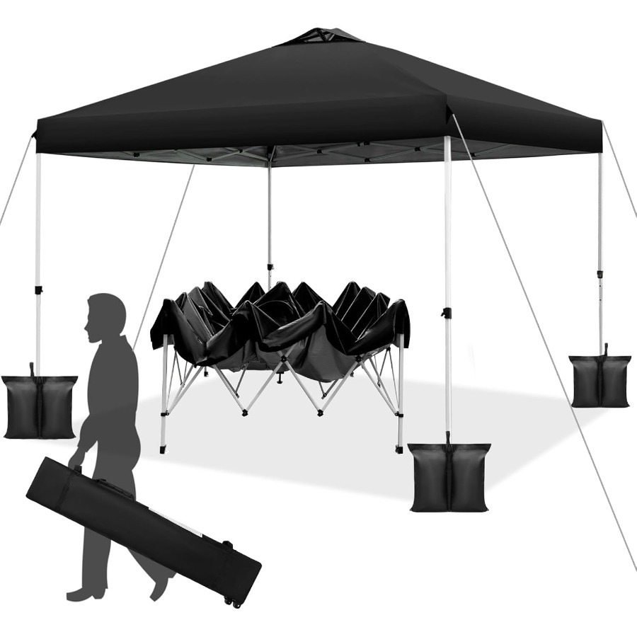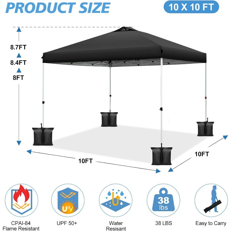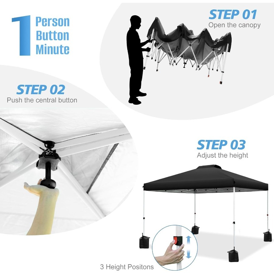 Carpa plegable de 10 x 10 pulgadas con un solo botón de instalación y altura ajustable para eventos al aire libre y campamentos. Refugio portátil instantáneo.