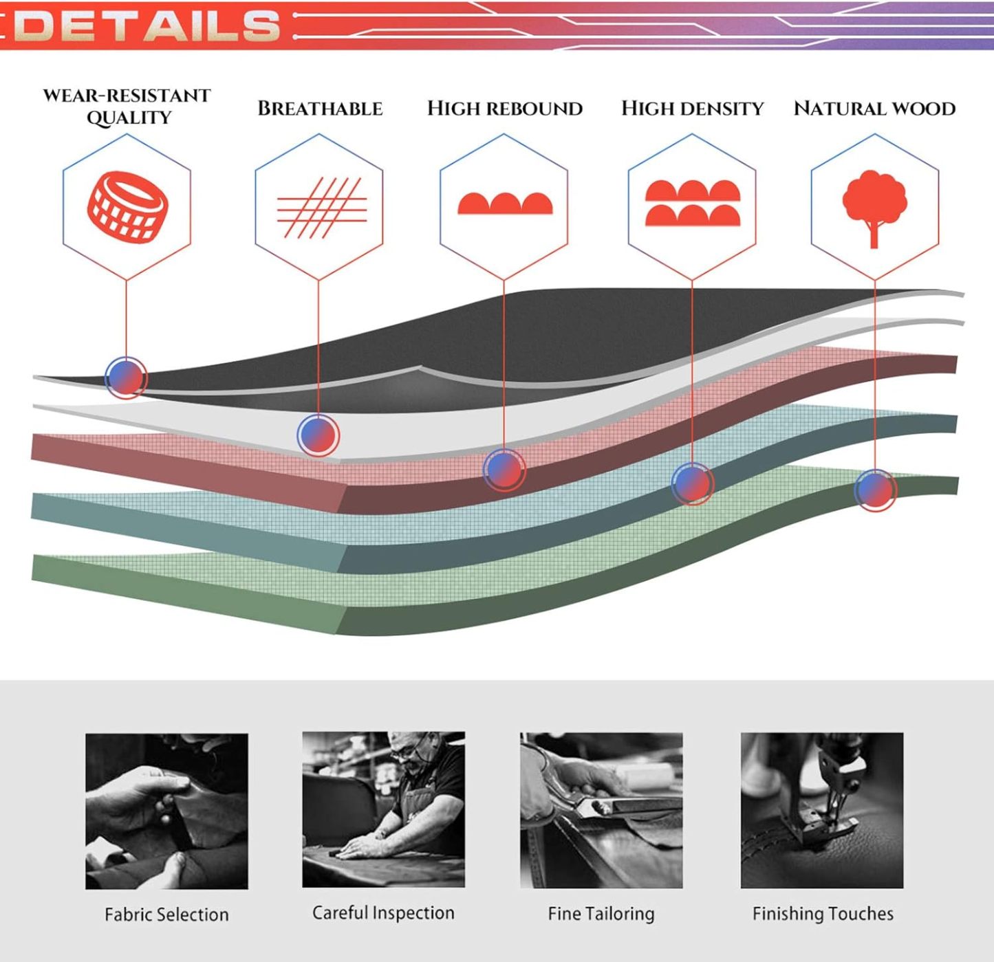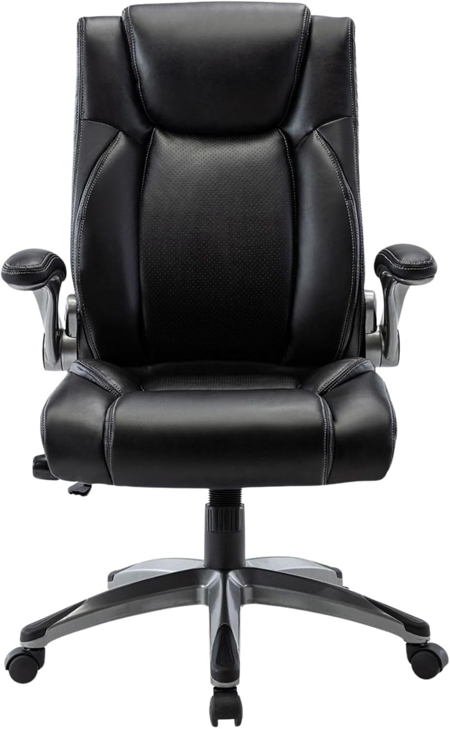 Silla de oficina ergonómica con soporte lumbar ajustable, cojín grueso, reposabrazos abatibles y función de balanceo para oficina en casa.