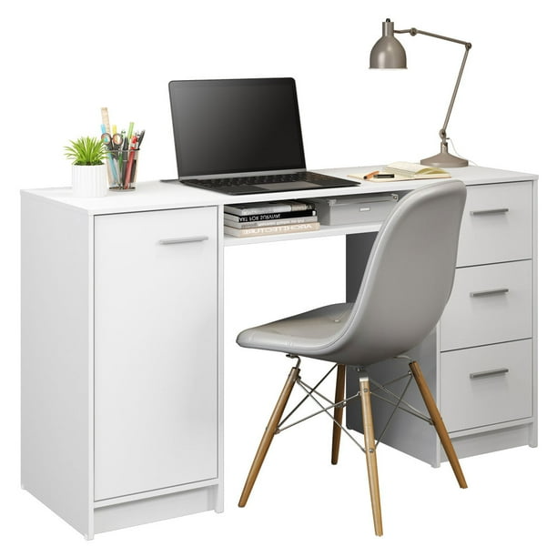 Escritorio Madesa con 3 cajones y 1 estante, con puerta. Kit de tornillos para instalación Manual de armado e instalación