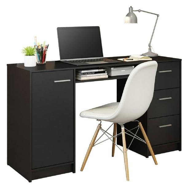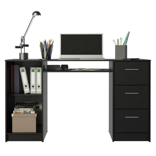 Escritorio Oficina Para PC Con 3 Cajones 1 Puerta Negro Madesa Alaska