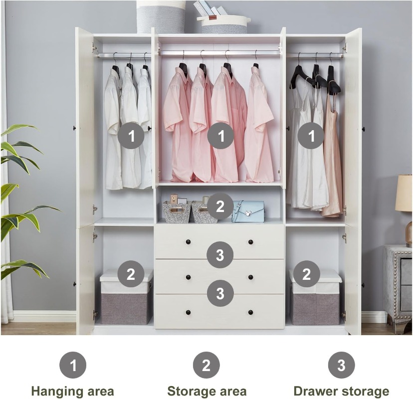 - 📲 【Responsive Customer Support】 - Please be aware that the white wardrobe will be delivered in two separate packages. If you encounter any difficulties during installation or if the storage cabinet arrives in a damaged or defective condition, please contact us immediately with supporting pictures or evidence. Our dedicated team is committed to promptly providing the most efficient solution available