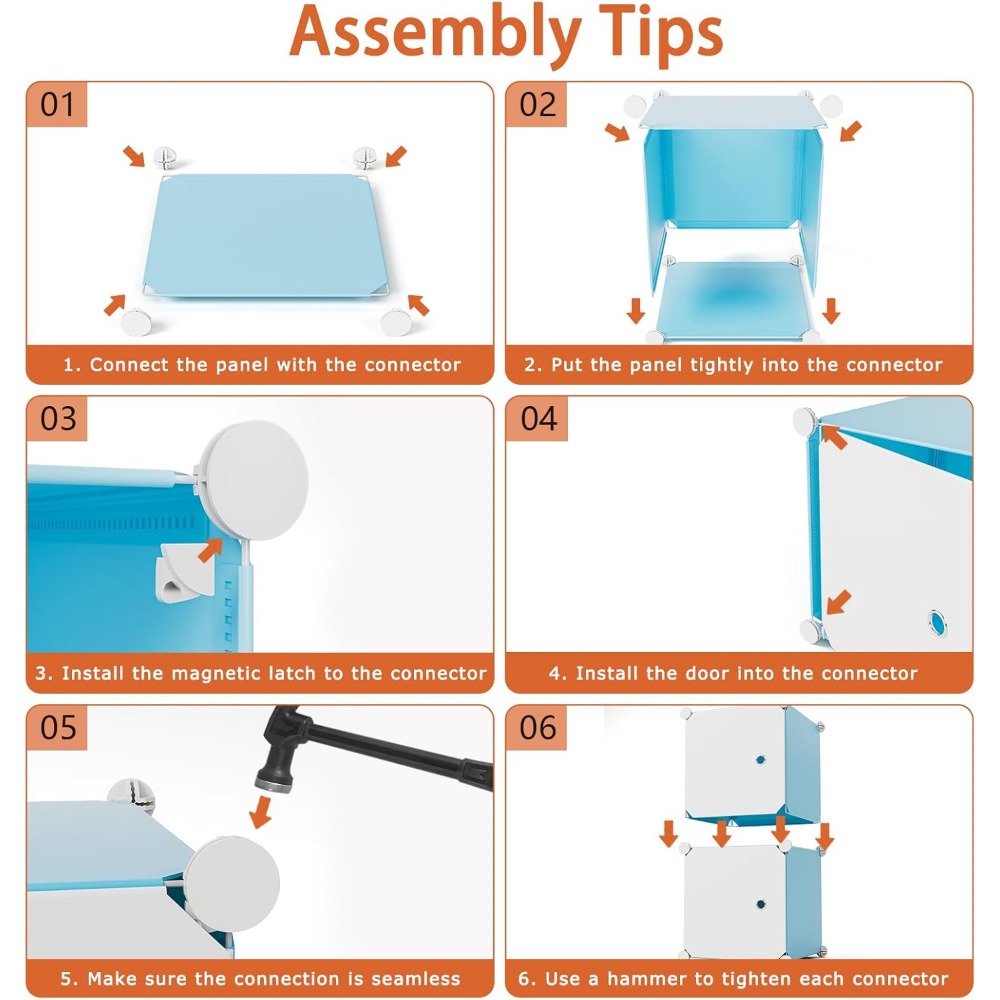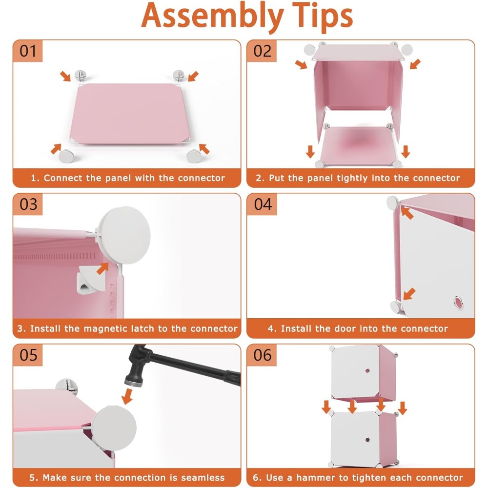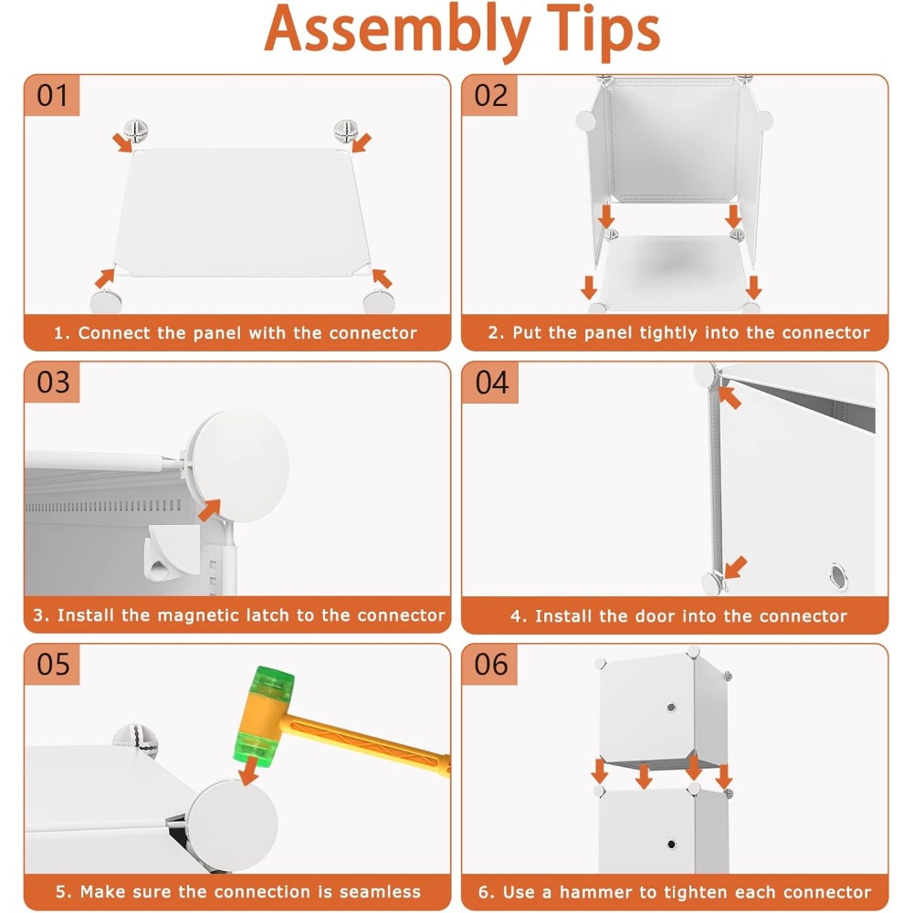 - 【Easy Assembly】: The simple structure of the closet makes it easy to install and disassemble, and the clear and easy to understand instructions with the included hammer can help you quickly complete the assembly.We also recorded a detailed installation video for your reference.