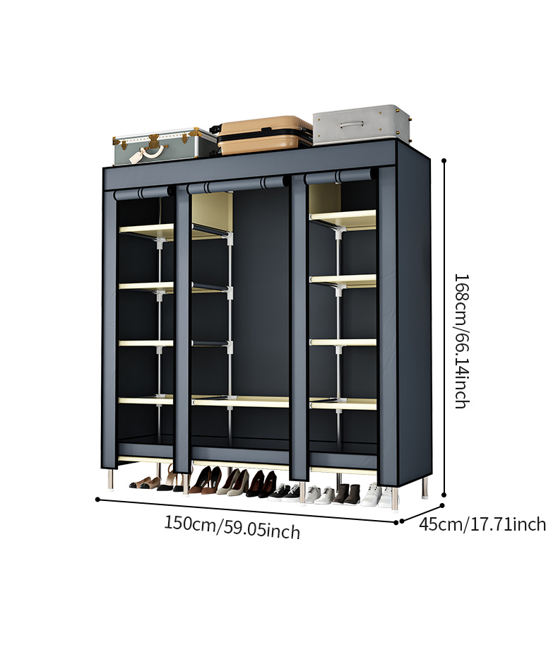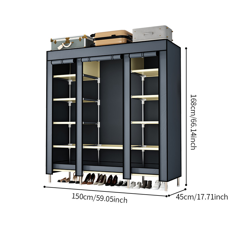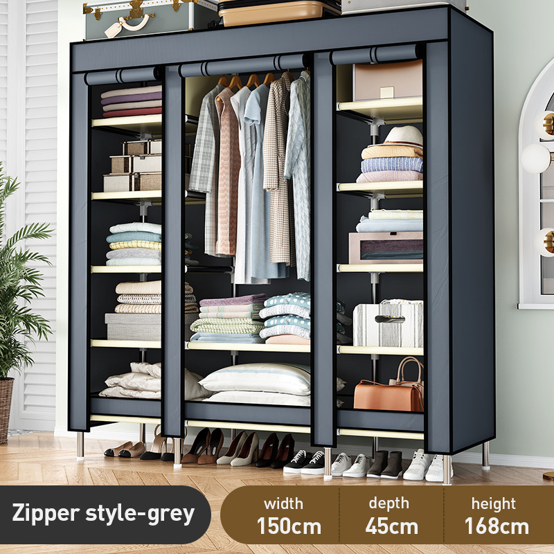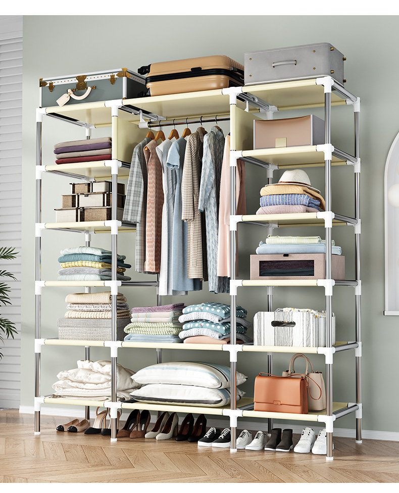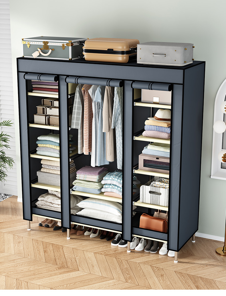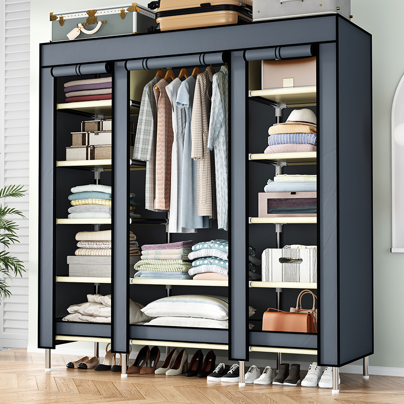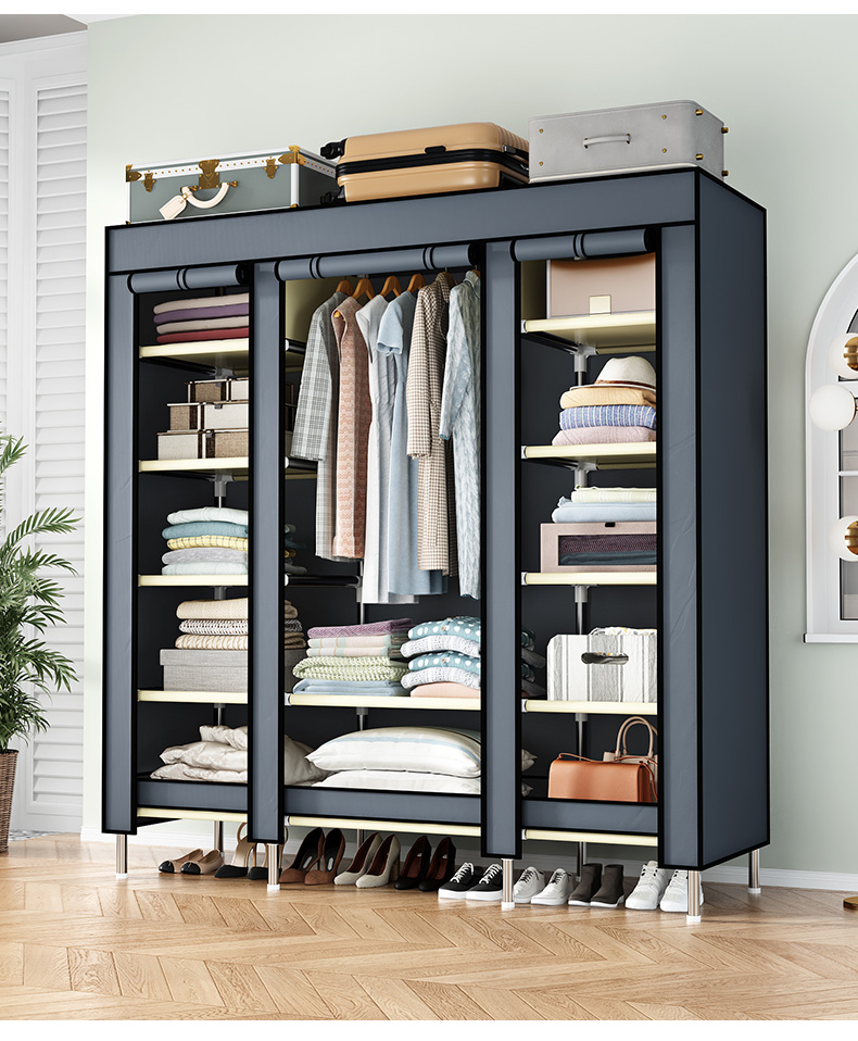 Wardrobe, simple cloth wardrobe, household bedroom assembly cabinet, rental room large wardrobe, sturdy, durable, simple, modern